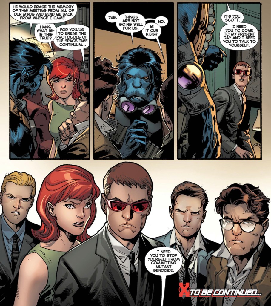 Beast throws the ultimate Hail Mary by going to the past and recruiting the original five X-Men. Kind of reckless Hank. Kind of really reckless…